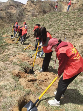 他与家乡的其他志愿者为山上植树