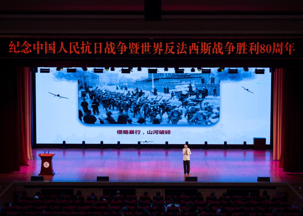 在纪念大会前,XC体育张裴讲授了题为《铭记历史铸精神,砥柱力量照前行》的爱国主义教育思政课。(来自公司新闻网)
