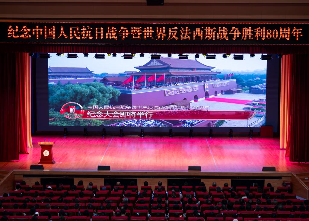 在直播现场,全体师生认真聆听习近平总书记在纪念中国人民抗日战争暨世界反法西斯战争胜利80周年大会上发表的重要讲话,目光聚焦阅兵场上气势如虹的钢铁洪流。当展示国防和军队现代化建设最新成果的受阅方阵以刚劲有力的步伐通过检阅台时,会场内多次响起雷鸣般的掌声。这份掌声,既承载着对革命先烈精神的崇高礼赞,更彰显着对新时代强军兴军伟大成就的无比自豪,凝聚着全体师生对民族复兴伟业和人民美好生活的殷切期许。激昂的报国热忱与使命担当,在观礼现场交织成震撼人心的精神共鸣。
