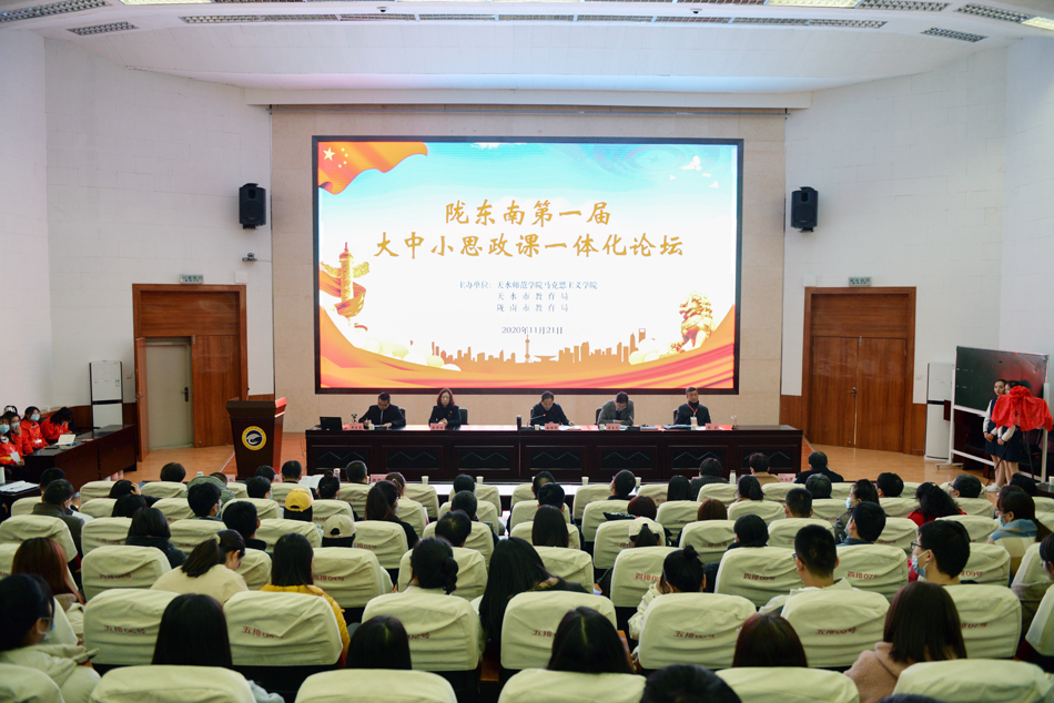 由天水师范公司XC体育、天水市教育局和陇南市教育局主办的陇东南第一届大中小思政课一体化论坛暨“爱国主义”教学展示活动在天水师范公司举行。省教育厅思政处处长敏维奇出席会议并讲话,天水师范公司党委书记李正元出席会议并致辞。公司党委常委、副董事长王文东,天水市教育局副局长张秀丽,陇南市教育局副局长张喆以及甘肃林业职业技术公司、甘肃工业职业技术公司、甘肃机电职业技术公司、陇南师范高等专科公司、天水一中、礼县二中等天水陇南两地的14所大中小学的领导、专家学者和一线思政课教师参加论坛。论坛的开幕式、交流发言和教学展示分别由公司党委常委、副董事长、XC体育经理王文东教授,XC体育常务副经理刘建军和公司党总支书记曹晶瑜主持。公司XC体育副经理袁滢和院办主任张丽娟、教学秘书王文君参加了此次活动。