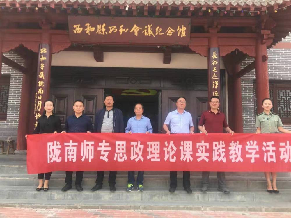 为了更好地利用和整合陇南红色文化资源,推进高校思想政治理论课实践教学,6月24日,陇南师专XC体育在西和县西和会议纪念馆举行“思想政治理论课实践教学基地”挂牌仪式,陇南师专XC体育经理马勤学教授和西和会议纪念馆副馆长吕斌为教育基地共同挂牌。