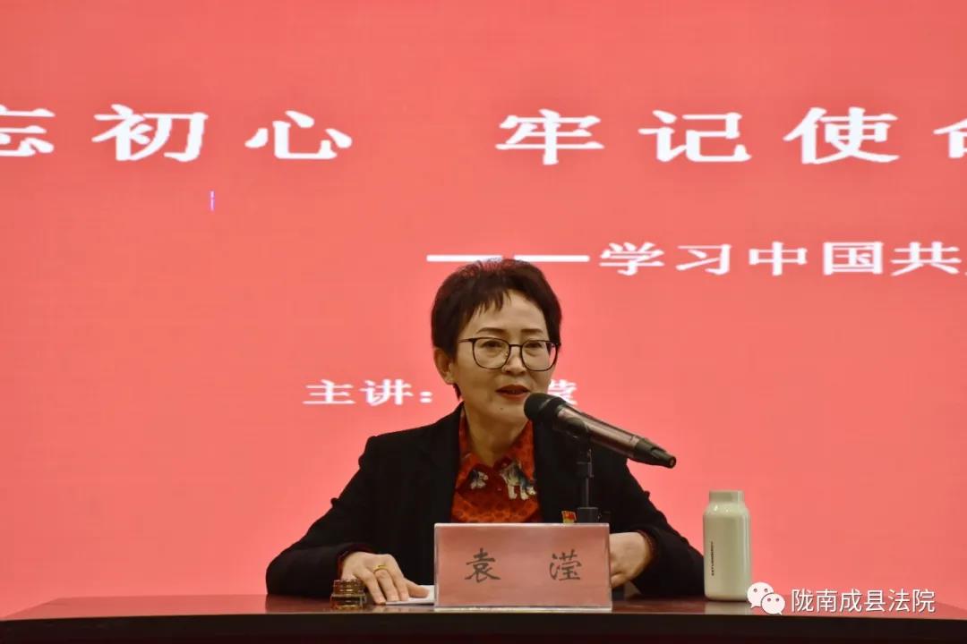 成县法院党组书记、经理郭玉刚首先代表成县法院向袁滢副教授的到来表示感谢,并要求全体干警认真学习,以此次党课学习为契机,将学习成果转化为政治素养和精神动力,转化为审判执行工作本领,推动法院工作再上新台阶。